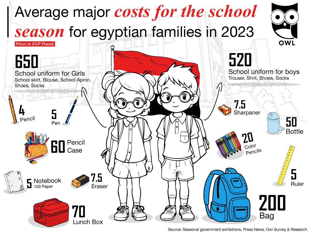 The back-to-school season in Egypt has become a significant financial challenge for families, as the cost of uniforms, stationery, and school supplies continues to rise. According to seasonal government surveys and Owl Research estimates, Egyptian families face major expenses in 2023, with costs varying depending on whether the child is a boy or a girl.