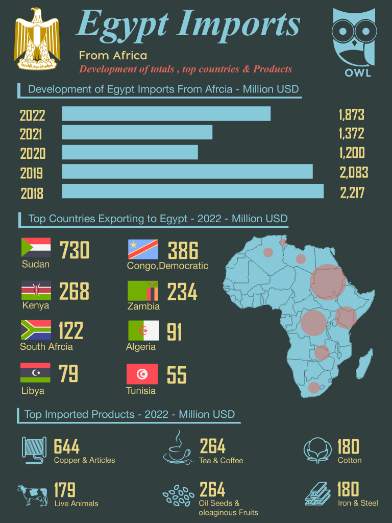 - For Egypt, increasing imports from Africa can help diversify supply chains, reduce dependency on far-away sources, and build regional economic ties.