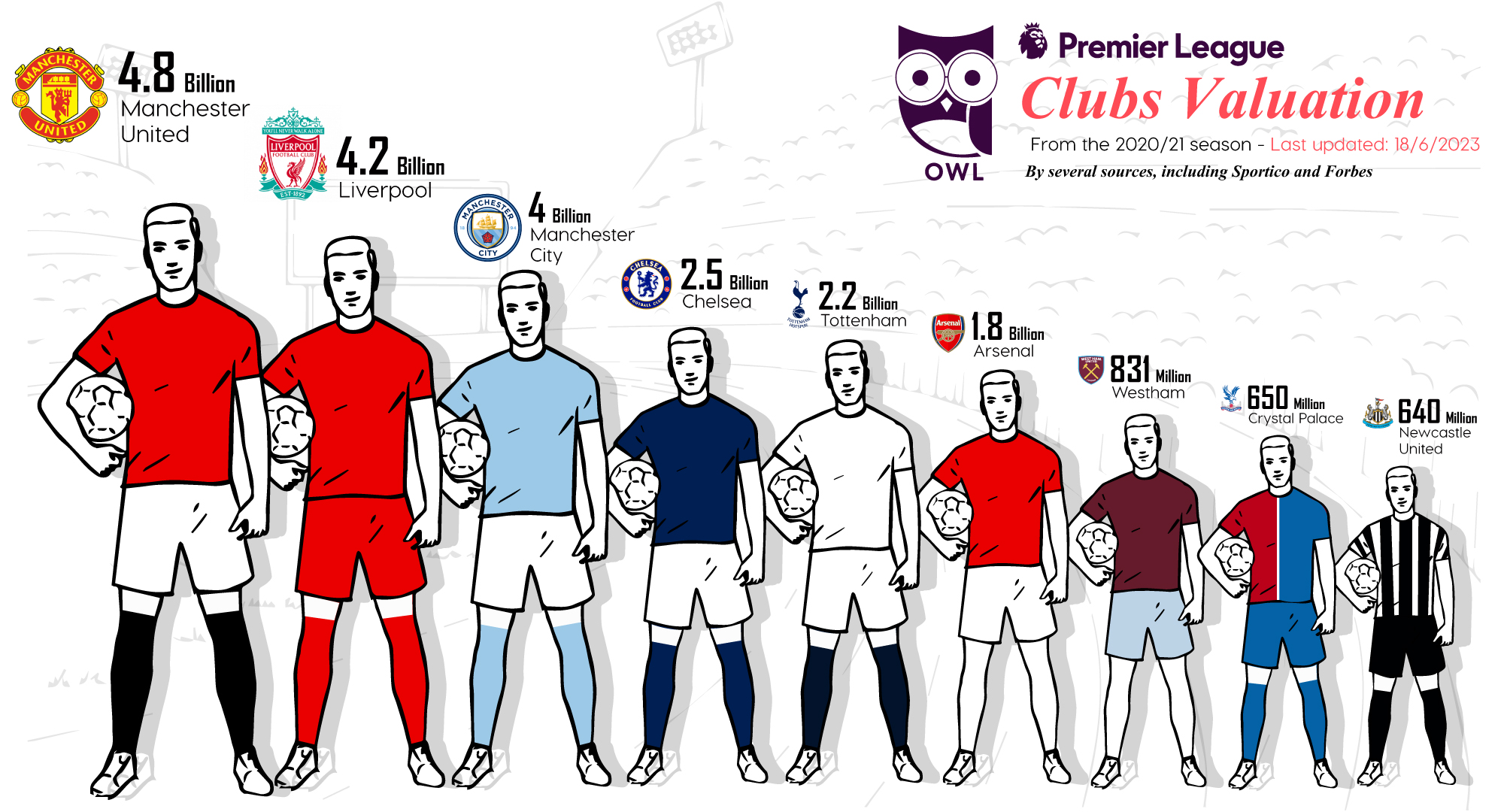 - Even though 2020/21 was a challenging year (due to COVID), the valuations of top Premier League clubs remained very strong. The global appeal of the Premier League made it more resilient than many other leagues.