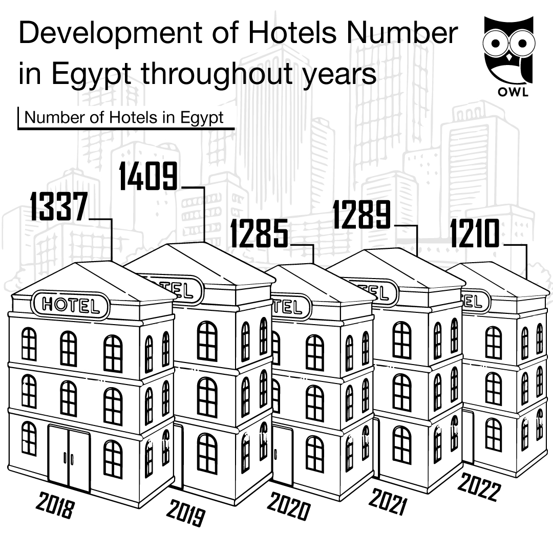 - As of 2022, Egypt had nearly 1,300 hotels operating, and forecasts expect this number to rise to about 1,700 hotels by 2027.