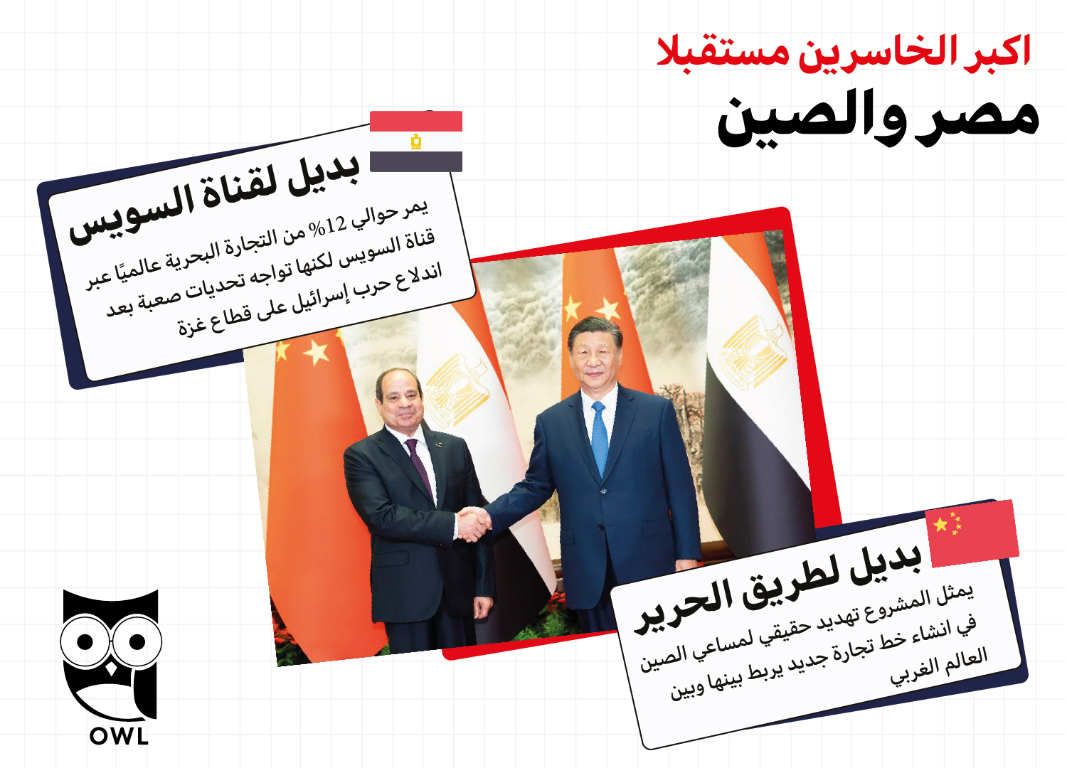 - Losers: China and Egypt may face economic pressure — China from competition with its Belt & Road, and Egypt from a potential decline in Suez Canal traffic, which currently carries around 12% of global maritime trade.