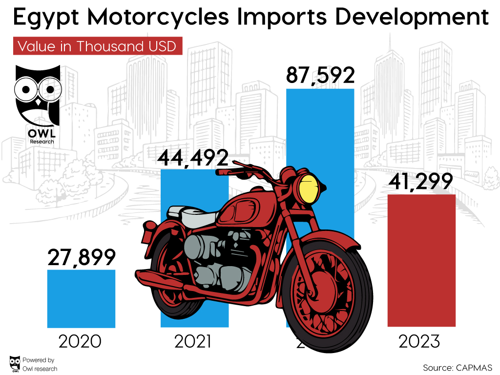 Motorcycles are a vital mode of transportation in Egypt, widely used for personal mobility, delivery services, and rural accessibility. Recent statistics from CAPMAS highlight how the value of motorcycle imports has fluctuated sharply between 2020 and 2023, reflecting changing demand, currency challenges, and government import policies.