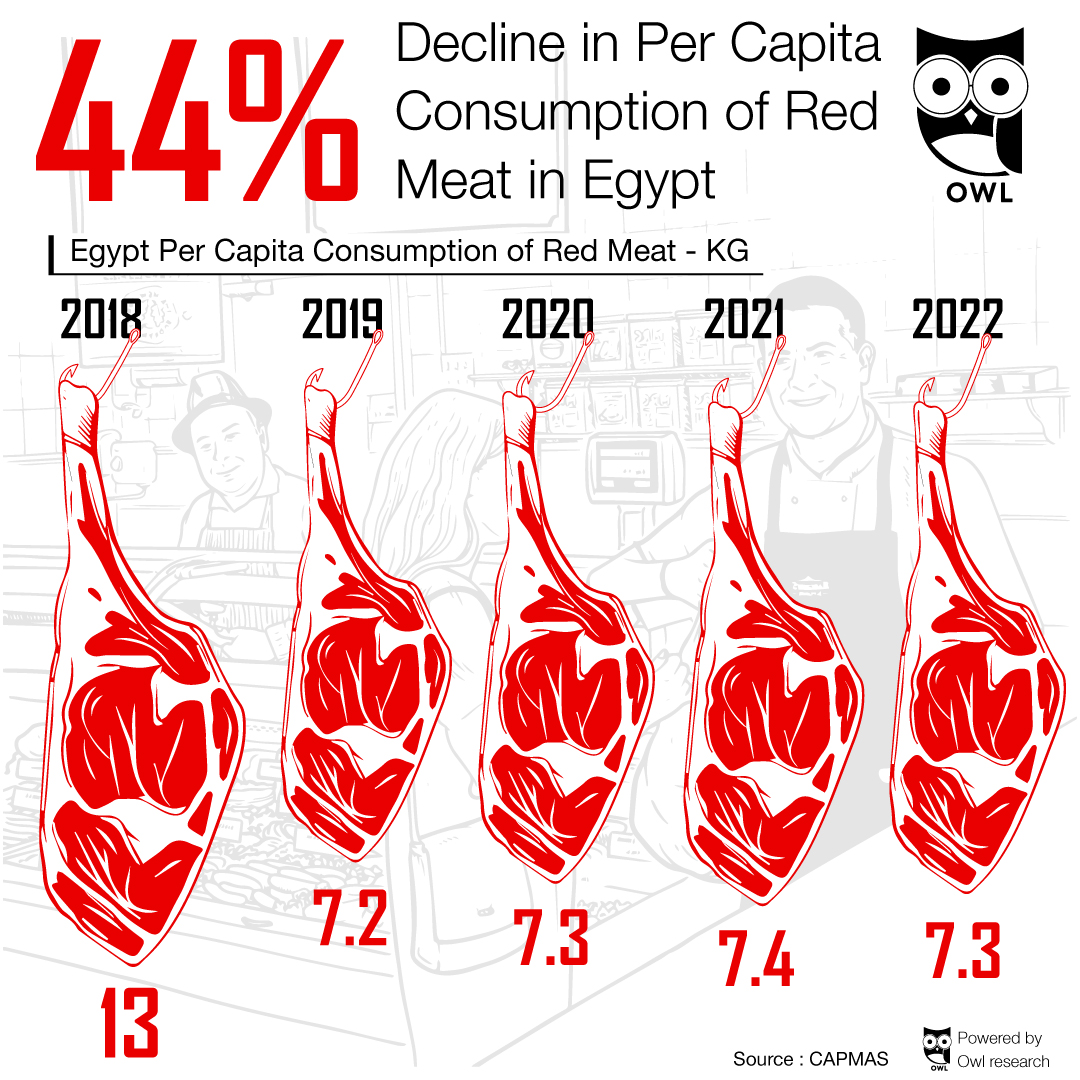 Several economic and social factors contributed to the decline in red meat consumption in Egypt: